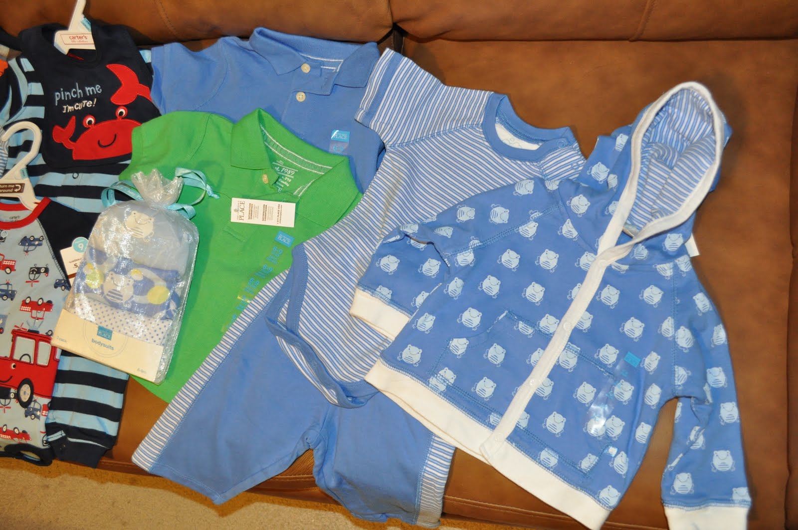 He enjoys "flying" - being held up in the air. And he clasps his hands together (starting the day after the doctor asked of course!). Recently he's showing more interest in his toys too - specifically his dinosaur and elephant that are hanging on his playmat. We've had to take dinosaur with us in the carseat on the past 2 outings.
